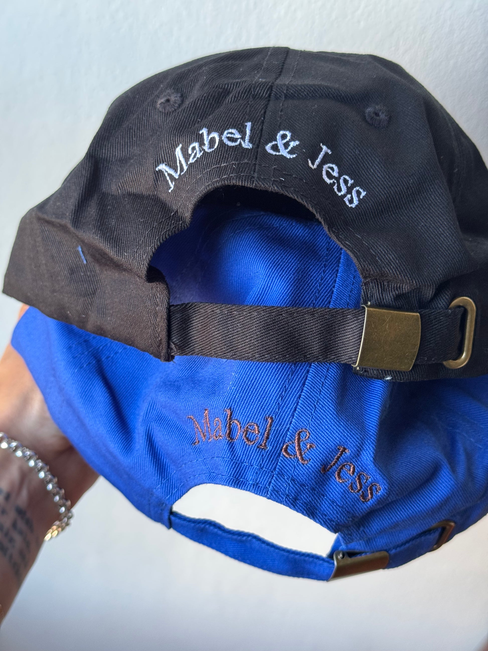 A classic, dad style baseball cap featuring every knitters constant thought: "I'd rather be knitting" embroidered on the front and "Mabel & Jess" on the back.