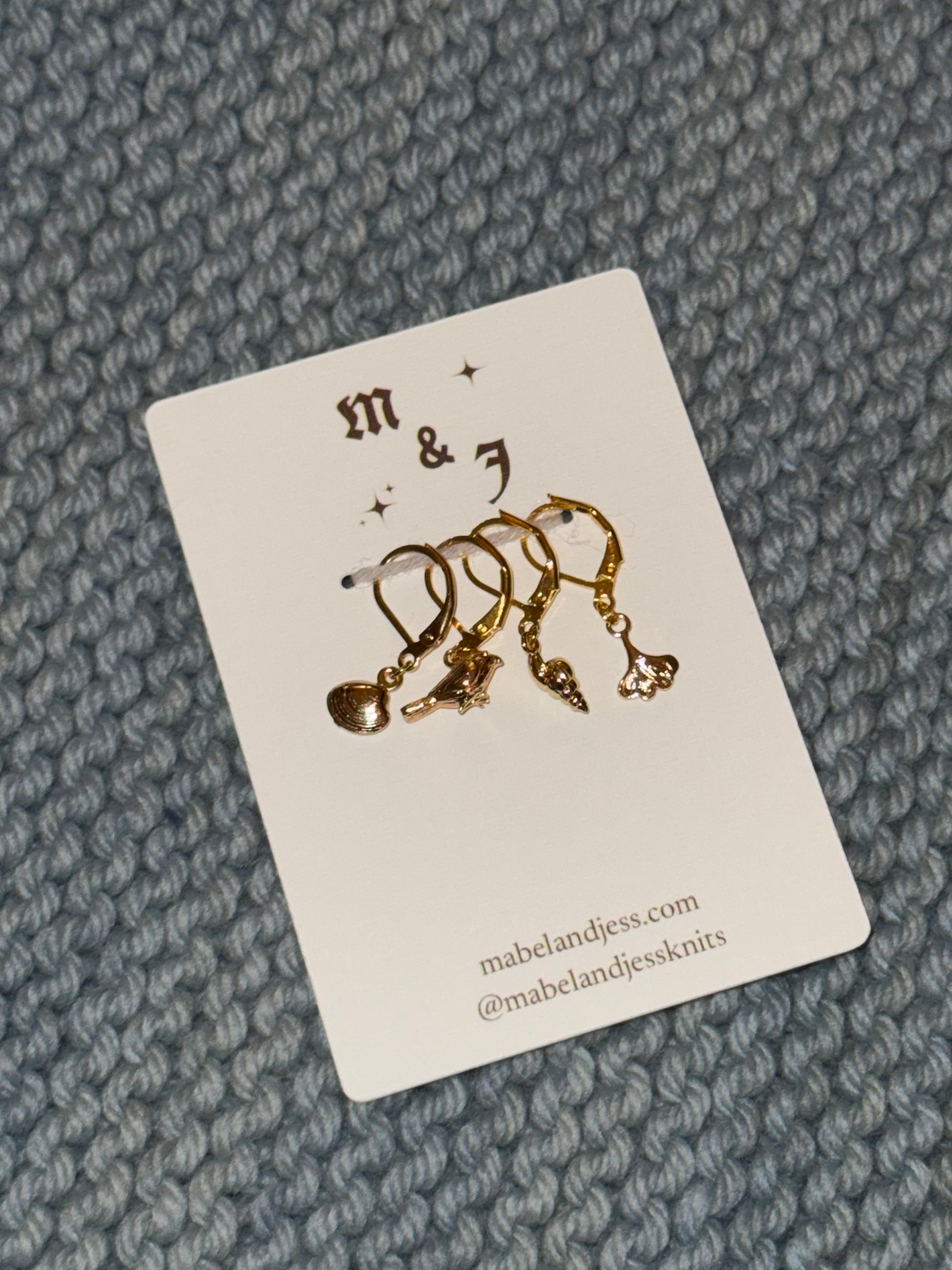 Set of 4 (1 of each) gold plated clam shell, bird, gingko leaf, and conch shell.